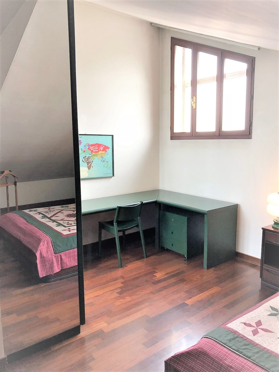 In stabile con ascensore, duplex ultimo piano con terrazze abitabili. L’appartamento si compone al piano di ingresso di un ampio soggiorno con terrazza abitabile, cucina separata anch’essa collegata ad un terrazzo, bagno, ripostiglio ed una camera eventualmente da adibire a studio. Arrivando al piano superiore troviamo due camere matrimoniali mansardate, un secondo bagno ed un poggiolo. L’abitazione nel complesso si trova in ottimo stato di manutenzione, parzialmente ristrutturata, con impianto elettrico a norma, serramenti con vetrocamera, aria condizionata. Garage. Giardino condominiale.