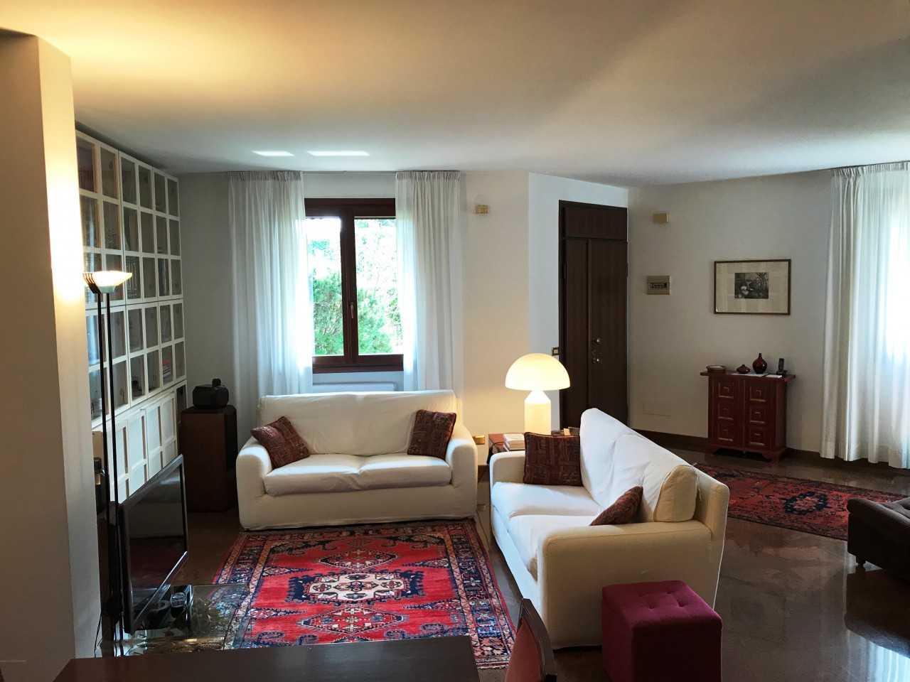 NOVENTA PADOVANA – in pieno centro al quartiere, splendida porzione di pentafamiliare al pian terra del 1990 con ingresso indipendente. Entrando, si accede ad un ampio soggiorno di quasi 45 mq pavimentato in granito. La cucina è separata abitabile, e affaccia tramite una porta finestra al giardino privato sul retro. La zona notte si compone di tre camere da letto a scalere, una matrimoniale di 16 mq, una dippia di 11,60 mq e una singola di 10 mq, e due bagni entrambi finestrati. Al piano sottostrada, completa il tutto una grande taverna con altezza 2,40 e caminetto, collegata a sua volta con il garage doppio in larghezza, nel quale si possono posteggiare due automobili. L’immobile è circondato sui tre lati dallo scoperto privato, ben piantumato e curato e offre un rapido e comodo accesso di servizio dalla rampa dei garage.