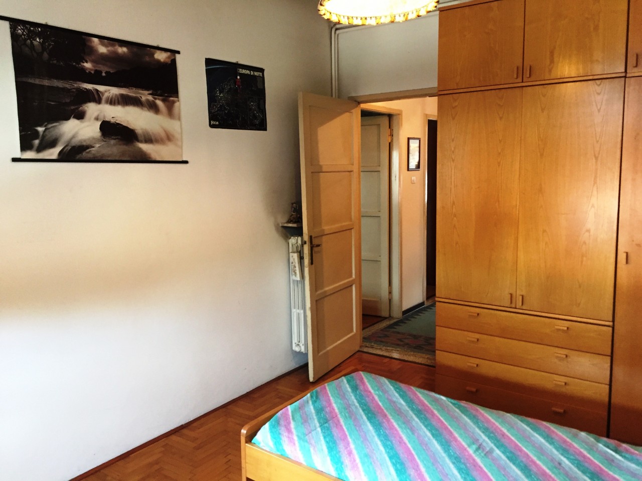 La zona notte si raggiunge tramite un corridoio con ripostiglio accessorio, e porta a tre camere da letto matrimoniali pavimentate in legno e ad un bagno con vasca.